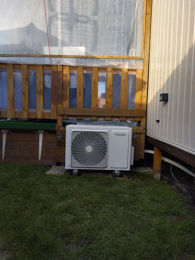 Installation et mise en service d'une climatisation réversible THERMOR Nagano dans un mobile-home au TOUQUET